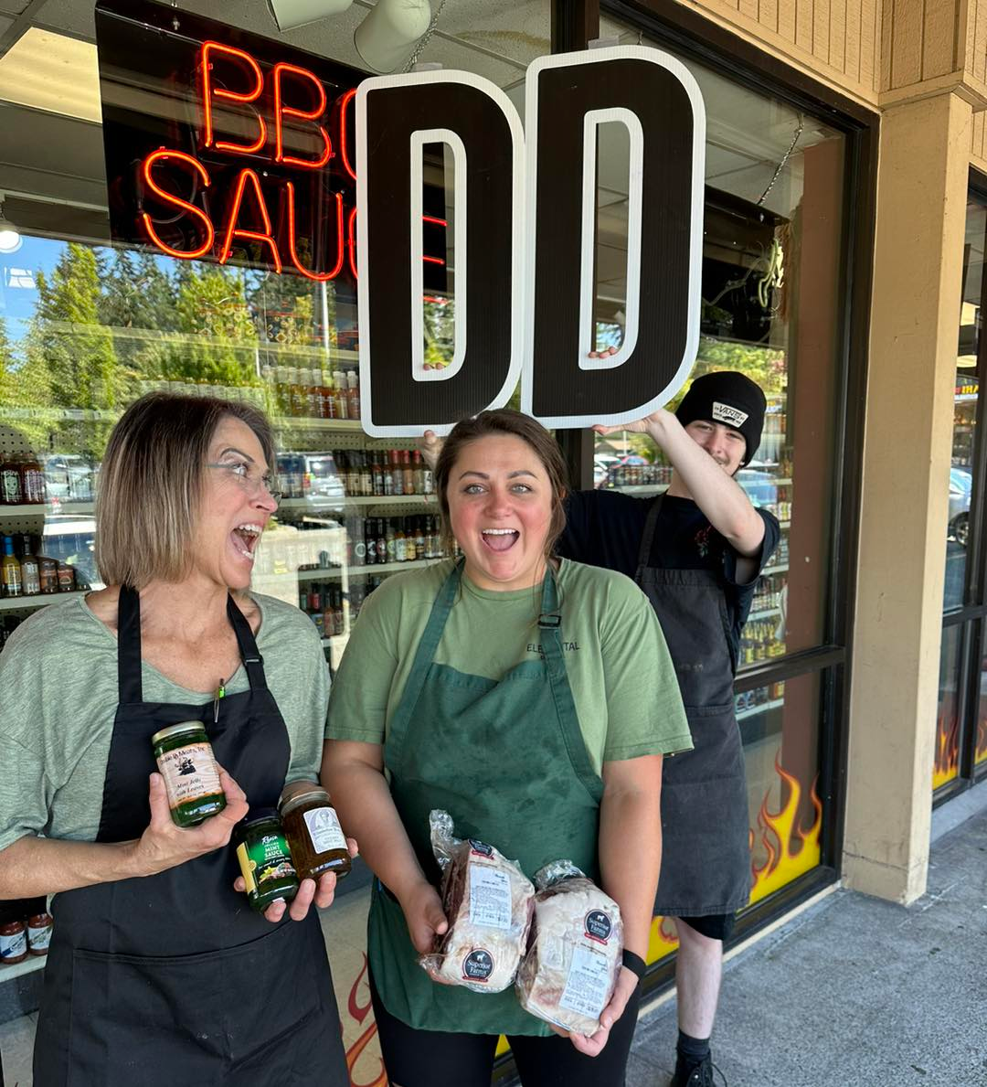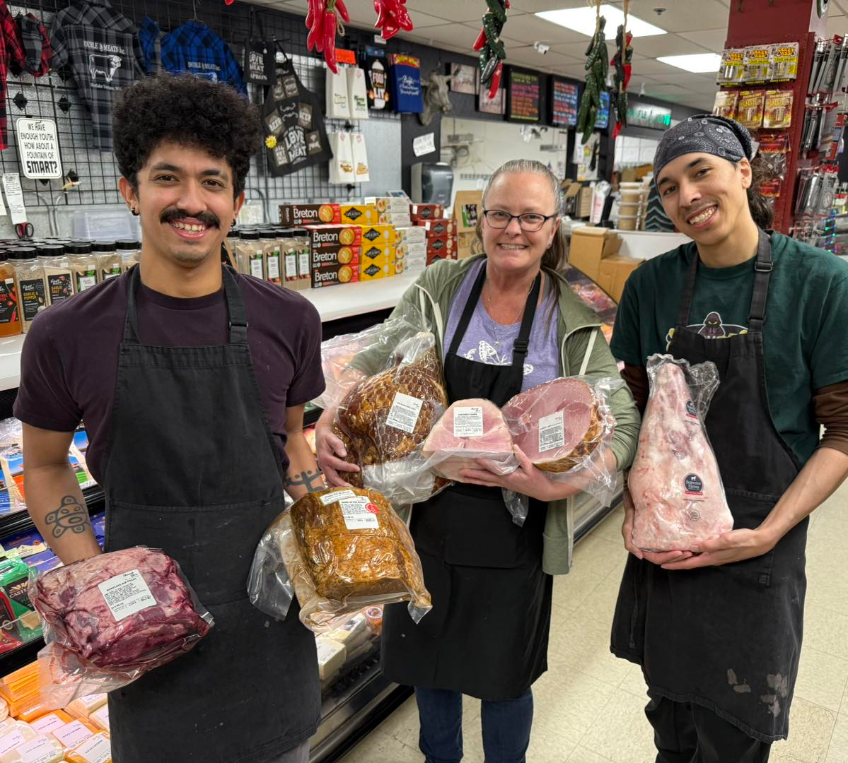 John Dallas and Dan Murray used their names to come up with "Double DD Meats" when they opened the doors for the first time. Lester Palaniuk started as a clean-up kid and bought the store around 1983. He worked here cutting custom steaks off of half cows, trimming pork roasts, and smoking chicken for customers while his wife, Bonnie, started collecting sauces for sale. Their kids, Kelsey, Kevin, and Kim would also help out during the summers with a couple employees they had at the time. It was a family tradition that when you were tall enough to see over the counter, you had to come to work!